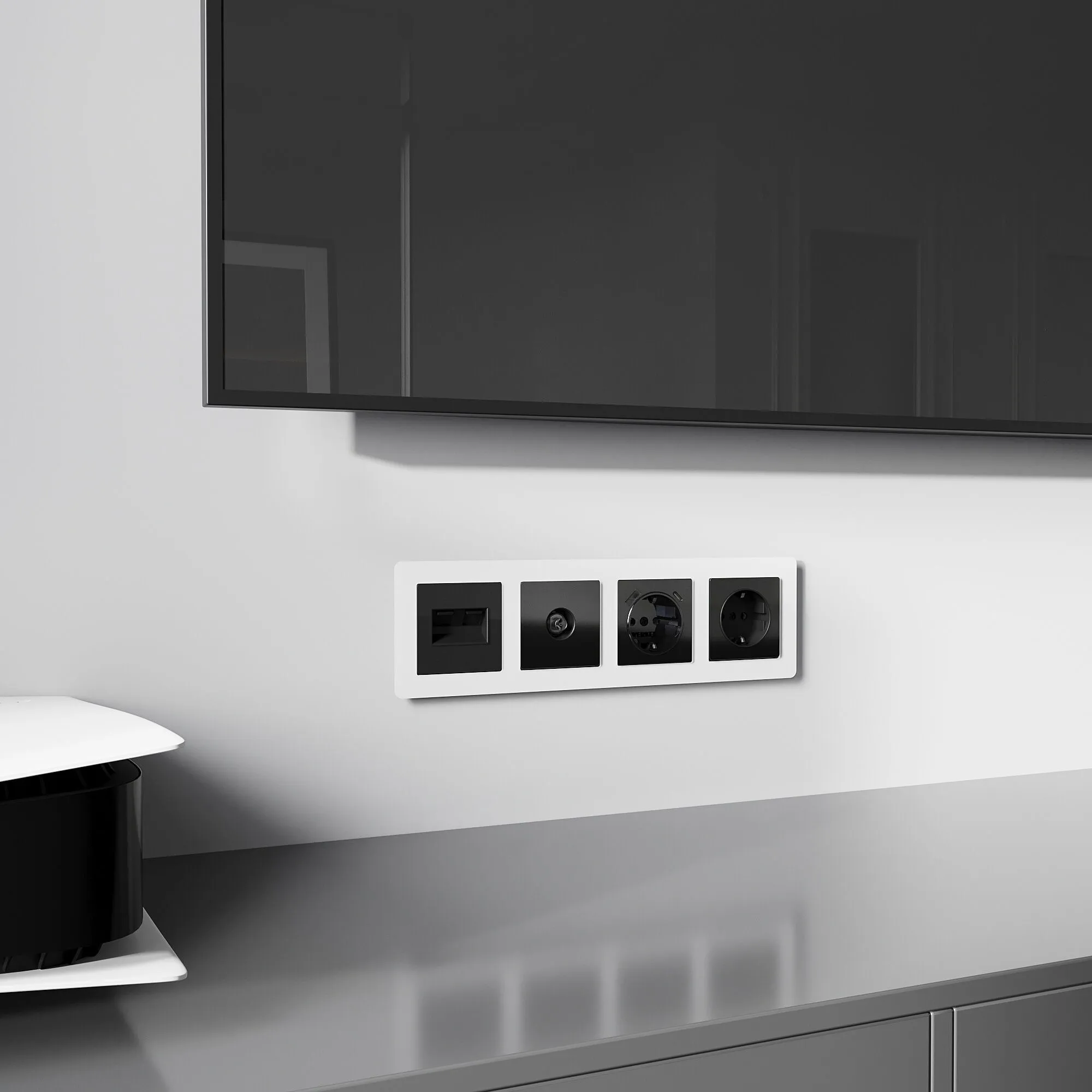 Накладка для двойной розетки Еthernet RJ-45 (черный акрил) W1191148