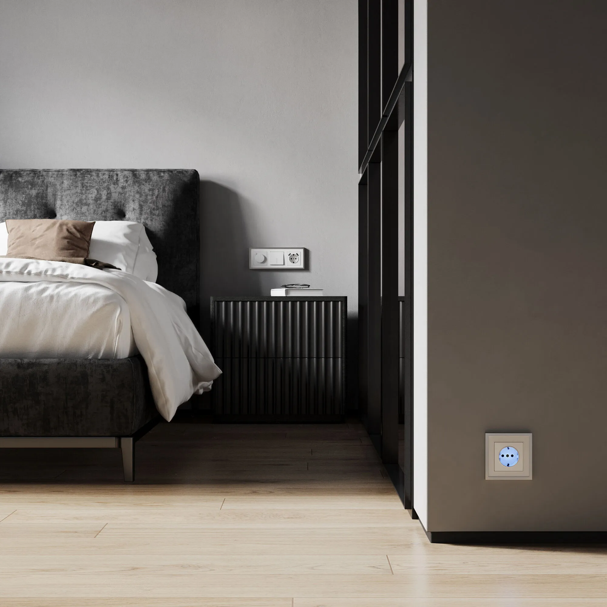 Такой подход обеспечивает мягкое, ненавязчивое освещение, идеально подходящее для спален, детских комнат, коридоров и прихожих. Больше не нужно включать основной свет, чтобы найти розетку или подключить устройство — всё под рукой, даже ночью.