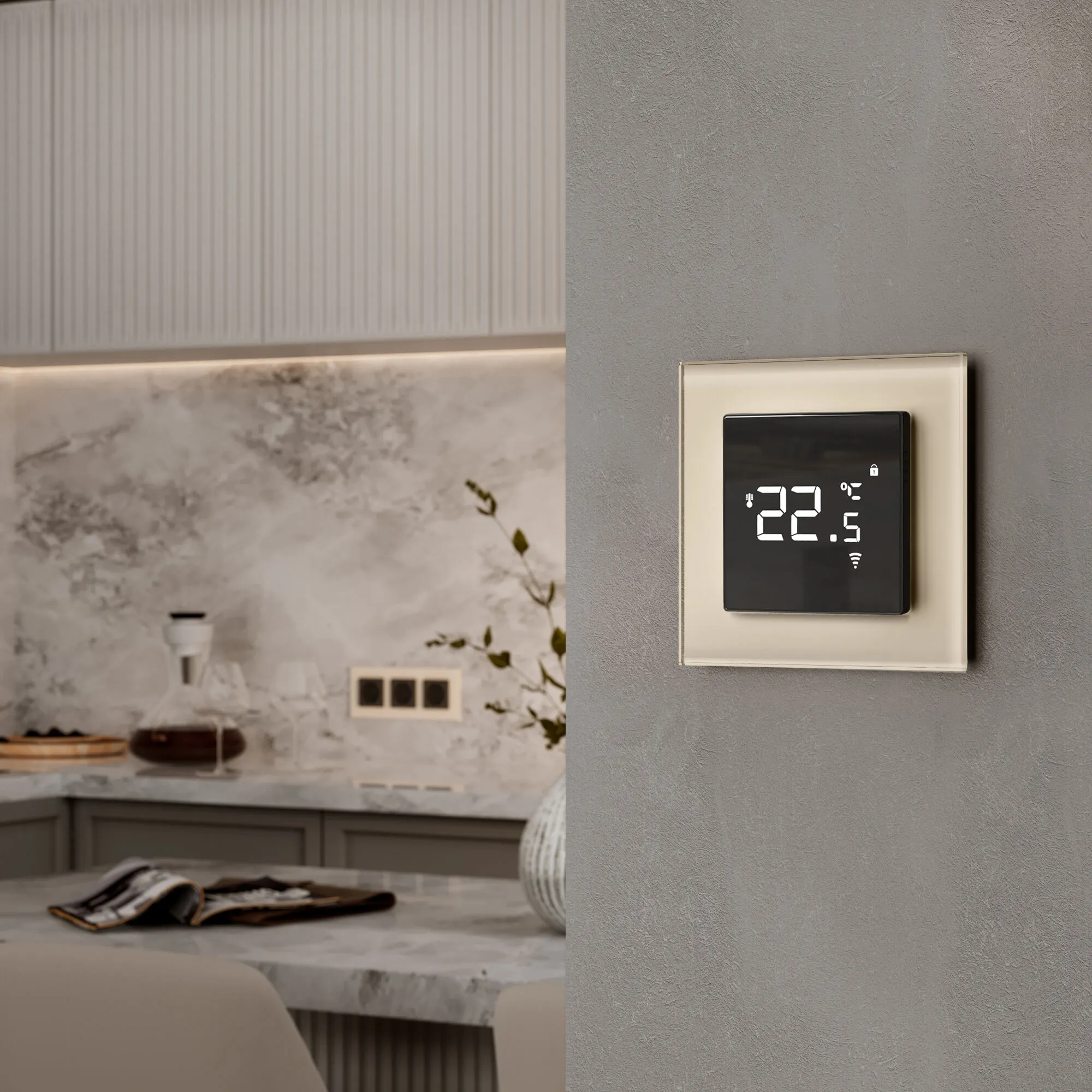 • Элегантный дизайн — молочный цвет и огранённые фаски придают рамке сияющий, чистый и современный вид.