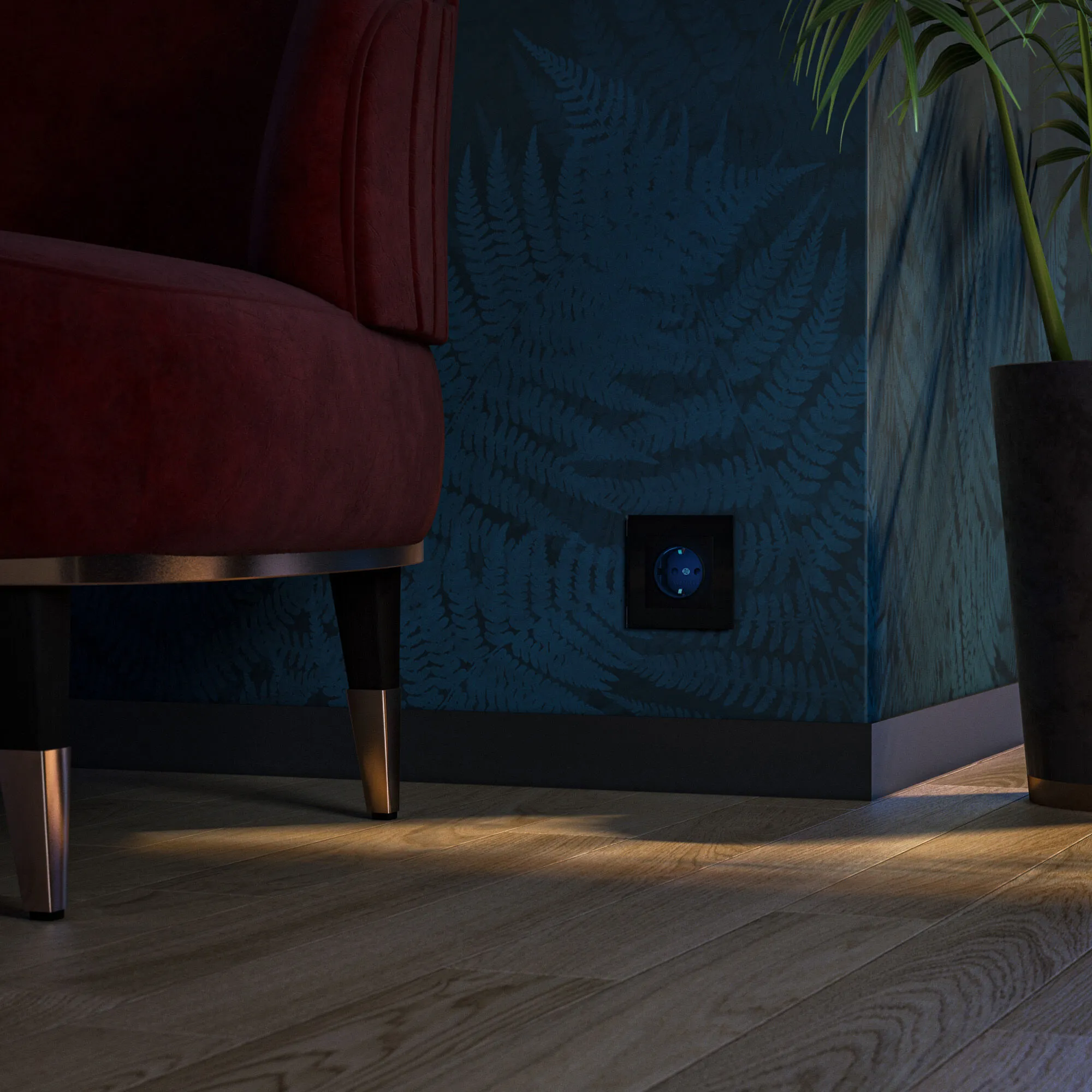 Такой подход обеспечивает мягкое, ненавязчивое освещение, идеально подходящее для спален, детских комнат, коридоров и прихожих. Больше не нужно включать основной свет, чтобы найти розетку или подключить устройство — всё под рукой, даже ночью.