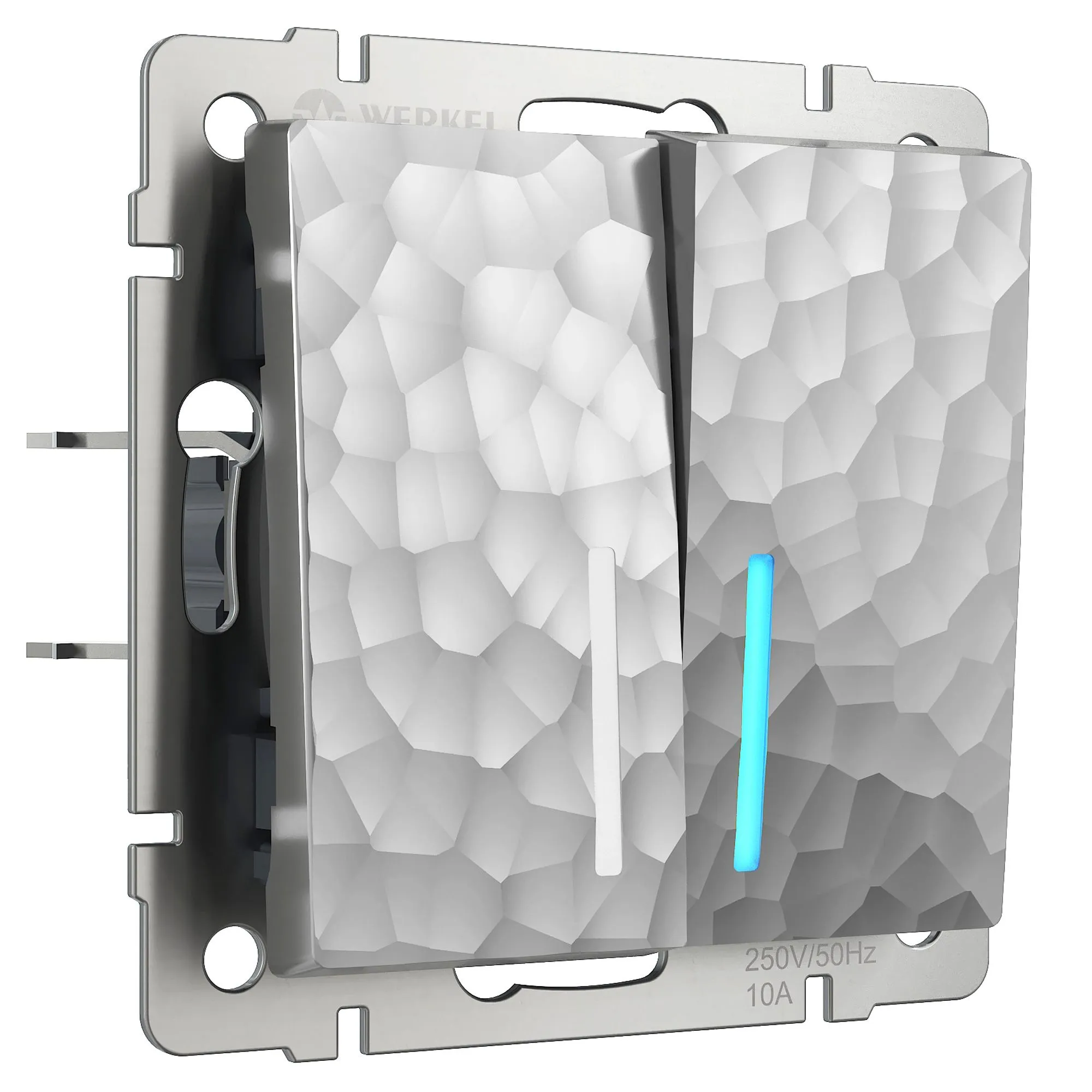 Двухклавишный выключатель с подсветкой Werkel серебряный Hammer — удобство в темноте, стиль в деталях