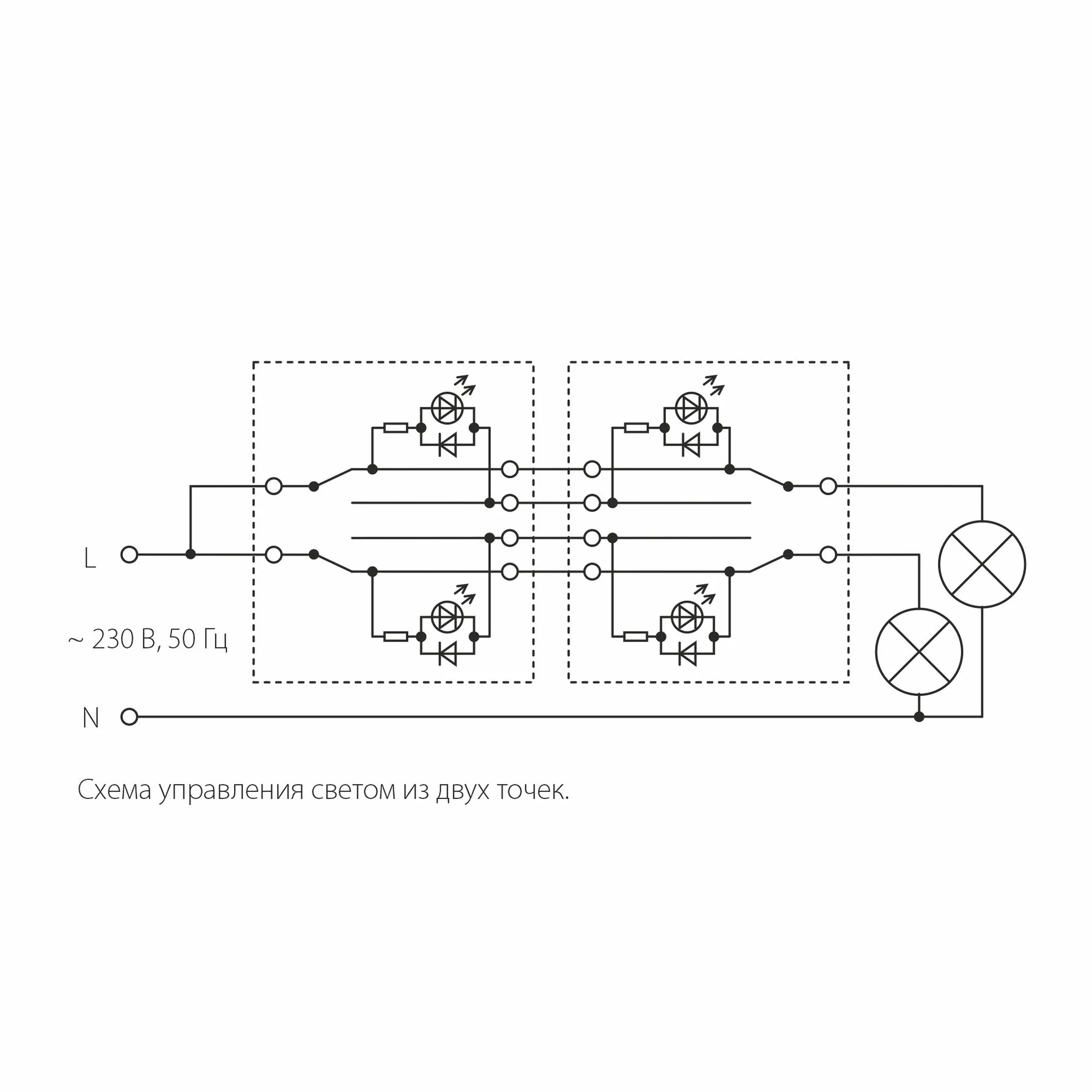 Выключатель двухклавишный проходной с подсветкой Werkel черный матовый — управление светом из двух точек + комфорт в темноте