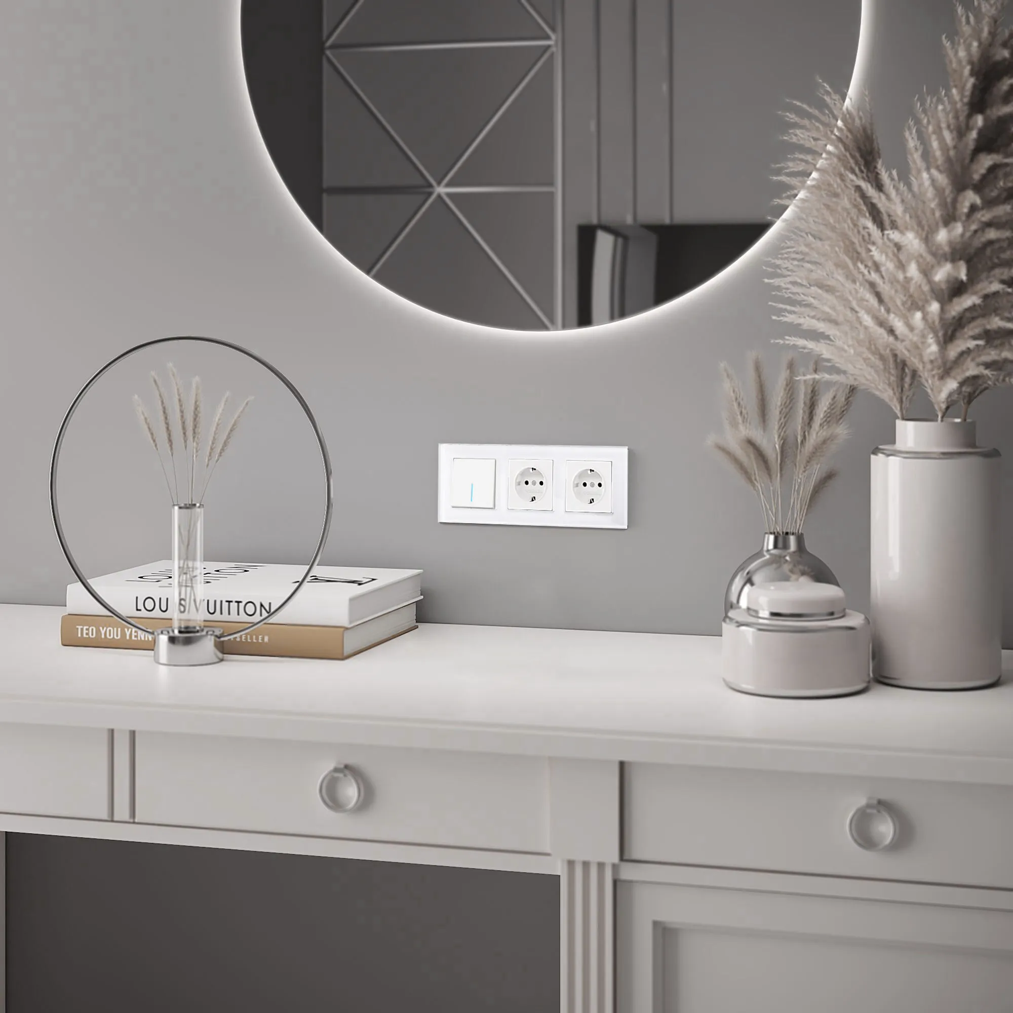 🔹 Нержавеющий металлический суппорт — гарантирует прочную и стабильную фиксацию в подрозетнике, исключает люфт и деформацию рамки.