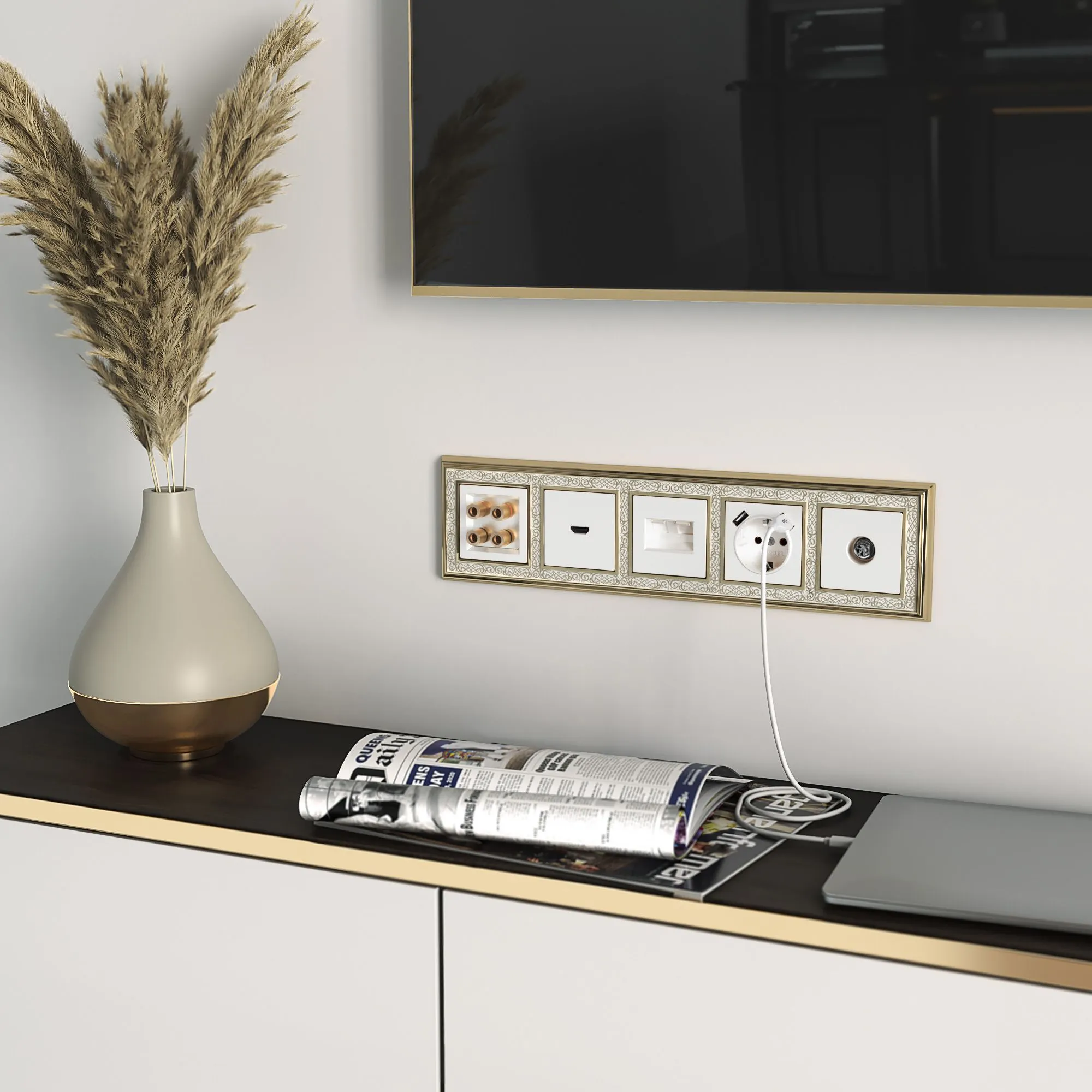 Интернет-розетка двойная совместима со всеми рамками коллекции Werkel, что позволяет создавать разнообразные цветовые и стилистические комбинации, подходящие под современные интерьеры.