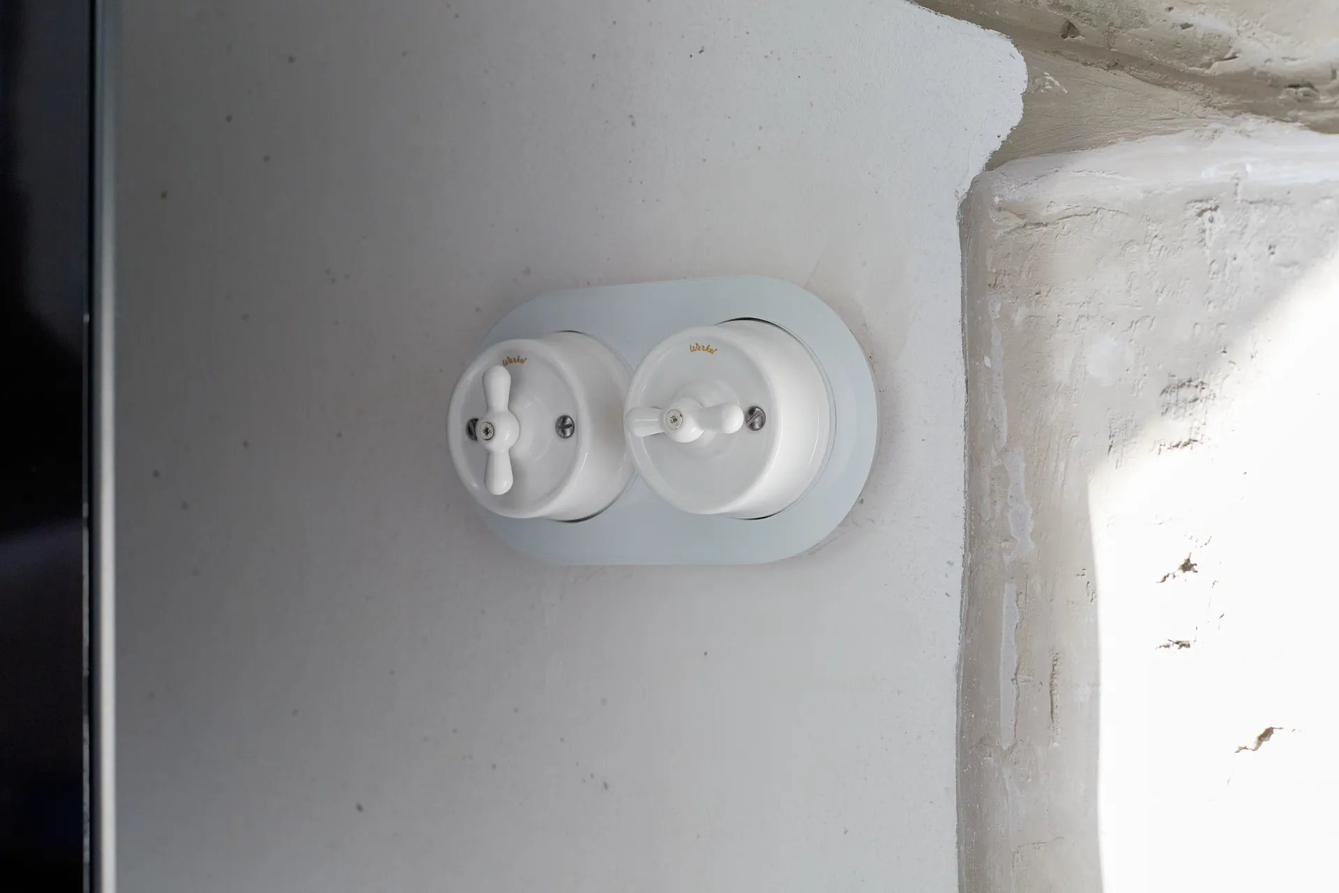Особое внимание уделили электроустановочным изделиям. В проекте использовались механизмы Werkel, выполненные в стиле ретро. Все изделия имеют прочный керамический корпус, а поворотные выключатели украшают элегантные ручки-барашки. Эти детали стали важной частью интерьера, подчеркивая его исторический характер и добавляя нотку аристократизма.